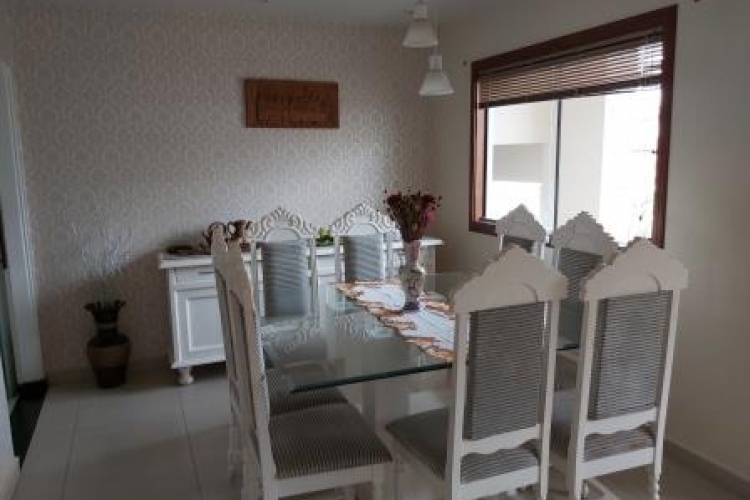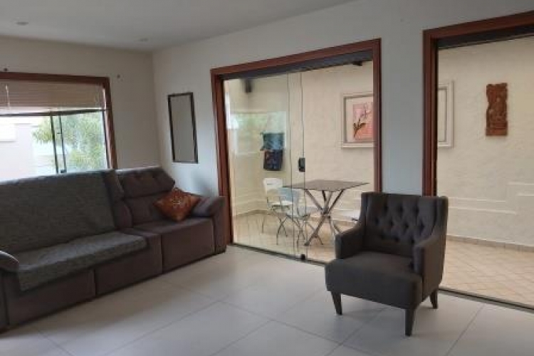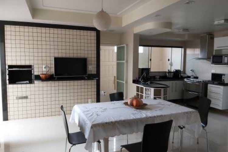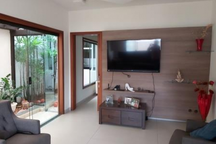 03 quartos sendo 02 suítes, todas com armários embutidos e uma com hidromassagem, sala de TV,sala de visita, copa, cozinha, área de serviço, despensa, garagem para 02 carros, churrasqueira integrada com a cozinha e área externa com ofurô.
